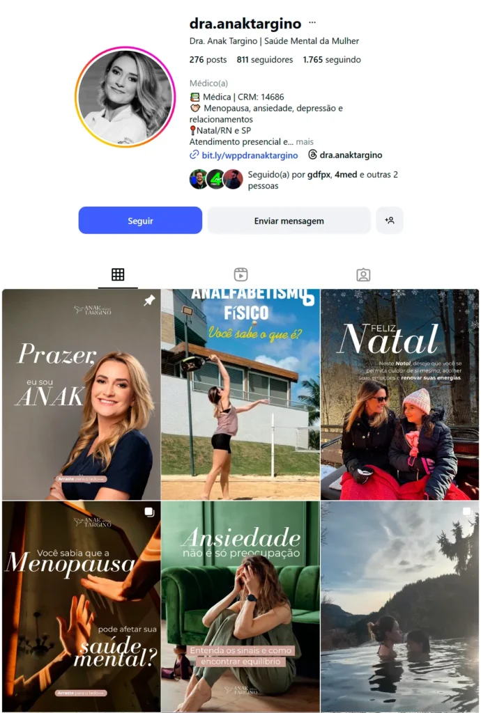 Com dupla formação, ela atende mulheres que estão vivendo a transição do climatério/menopausa e enfrentando desafios emocionais como ansiedade, depressão, insônia e irritabilidade.
